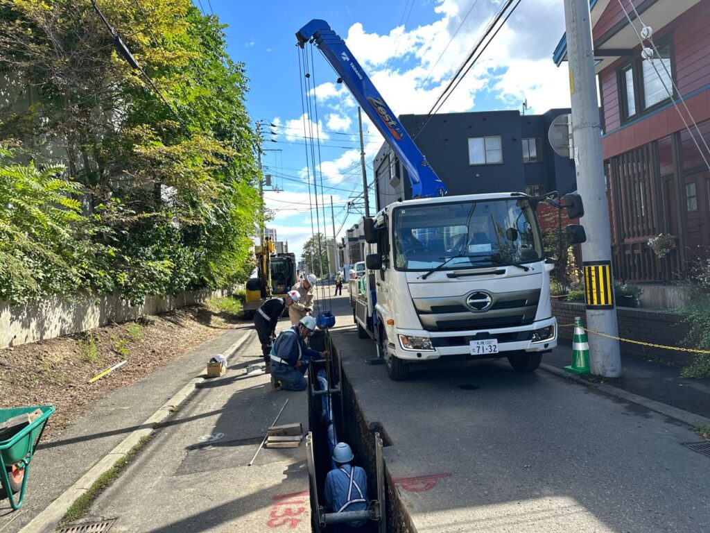 本工事は、老朽化した水道管を新しい耐震管へ更新する工事です。この地域の水道管は設置から何十年も経過しており、漏水や破損のリスクが高くなっていました。